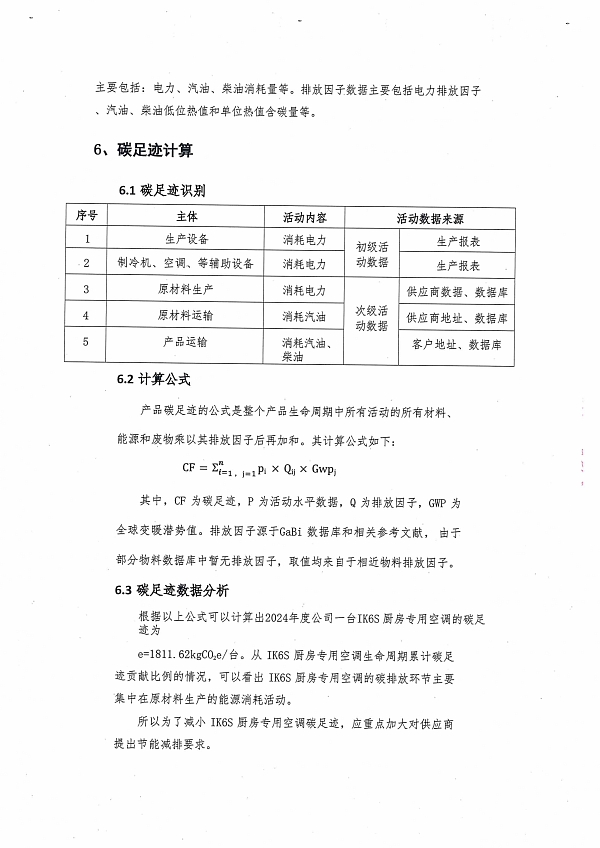 2024年度iK6S廚房專用空調產品碳足跡報告